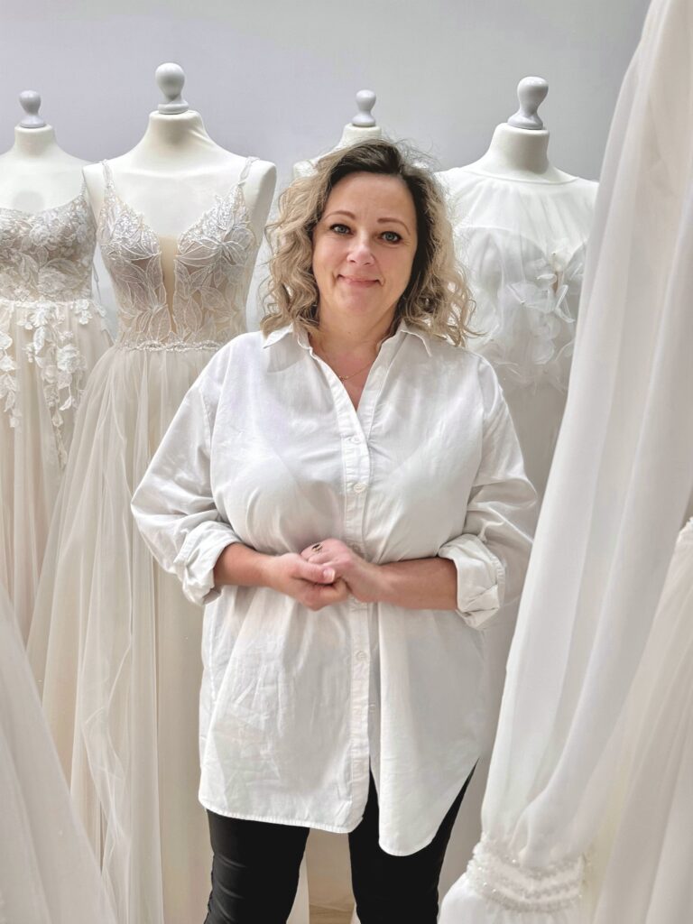 Aneta – jest czarodziejką, choć nie nosi szpiczastego kapelusza, a jej różdżką jest igła z nitką. To ona głównie towarzyszy Wam podczas przymiarek i udowadnia, że wybór sukni ślubnej może być świetną przygodą. Słucha, doradza, wyjaśnia, cierpliwie tłumaczy i mówi o sprawdzonych i tych mniej sprawdzonych rozwiązaniach w modzie ślubnej. Czuwa by każda suknia leżała jak ulał i była perfekcyjnie wykończona, a zna się na tym jak mało kto, bo jej doświadczenie w krawiectwie ślubnym sięga niemal trzydziestu lat. Jej misją jest wypuścić Was z salonu w kreacji, w której czujecie się jak milion dolarów!
